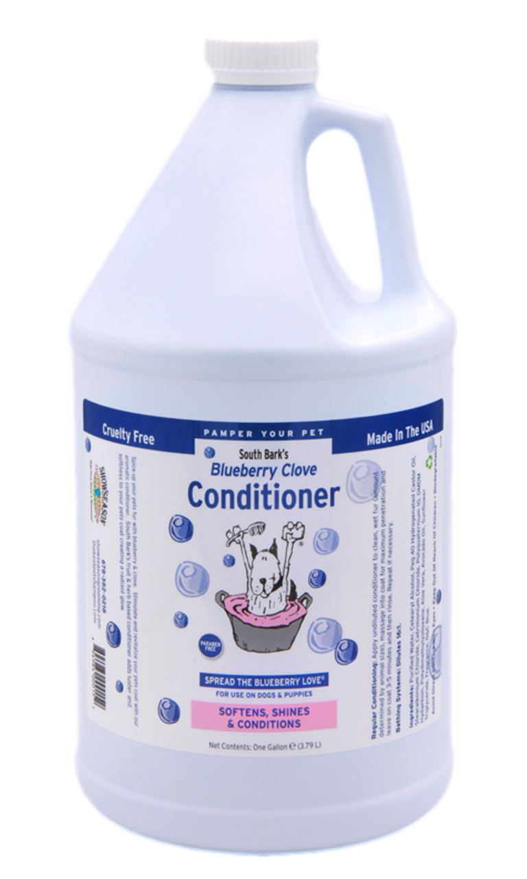 Stimulate and revitalize the coat with the help of ShowSeason - South Bark™ Blueberry-Clove Conditioner . South Bark's fruit and herb based conditioners add luster and softness to the animal's coat creating a radiant glow with the help of nature. Dilutes 4:1. For Use On Dogs, Cats, Puppies & Kittens.